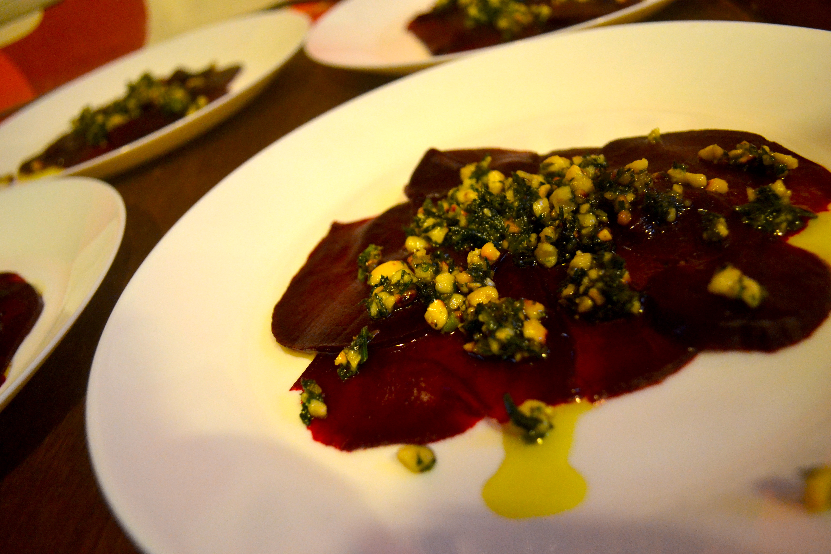 Première bouffe-tatoo, repas végé réalisé par nous et tatouages en forme de légumes réalisés par Mama Yaga, le cuistot est reparti avec un radis sur la cuisse, le serveur avec une fraise sur le poignet.