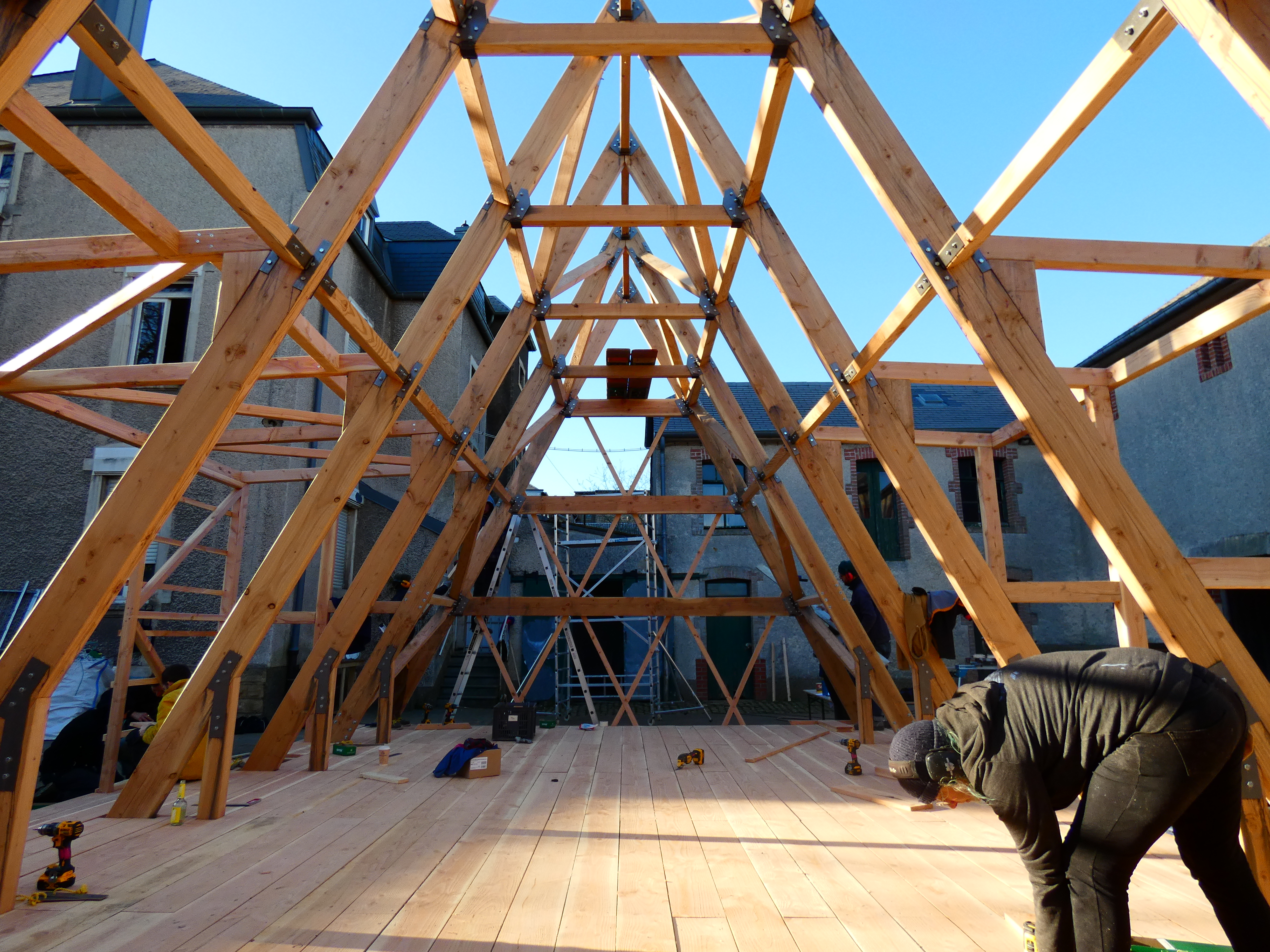En mars 2022, les premiers madriers sont là et en trois semaines la structure est finalisée.