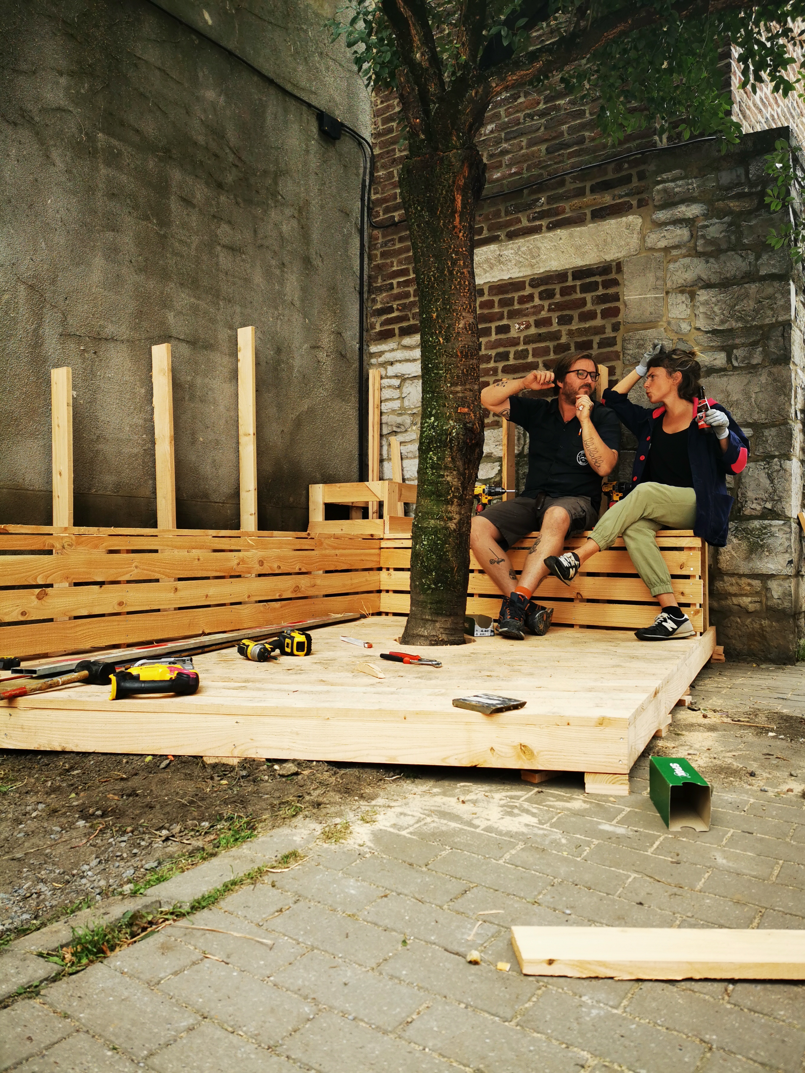 La première intervention a eu lieu en octobre 2021, elle a permis d’organiser un espace pour accueillir ‘le p’tit kawa’, un moment convivial hebdomadaire autour d’un café pour les habitant.e.s du quartier.